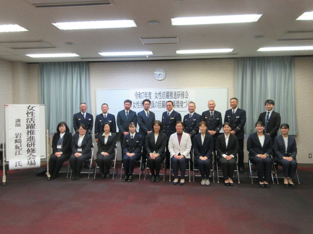 令和7年12月16日(火)、総務省消防庁の女性消防吏員活躍推進アドバイザー派遣事業を活用し、神奈川県大和市消防本部から岩﨑消防司令長を講師としてお招きし、女性活躍推進研修会を開催しました。